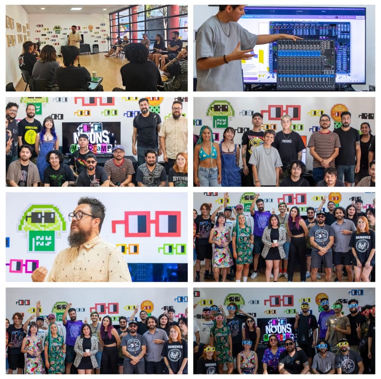 El Nouns Music Camp es una iniciativa diseñada para apoyar a las bandas emergentes en su camino hacia la profesionalización. Este proyecto se llevó a cabo en Santiago y se desarrolló a lo largo de cuatro jornadas intensivas, donde 7 bandas de la ciudad tuvieron la oportunidad de beneficiarse de la experiencia y el conocimiento de expertos en la industria de la música.